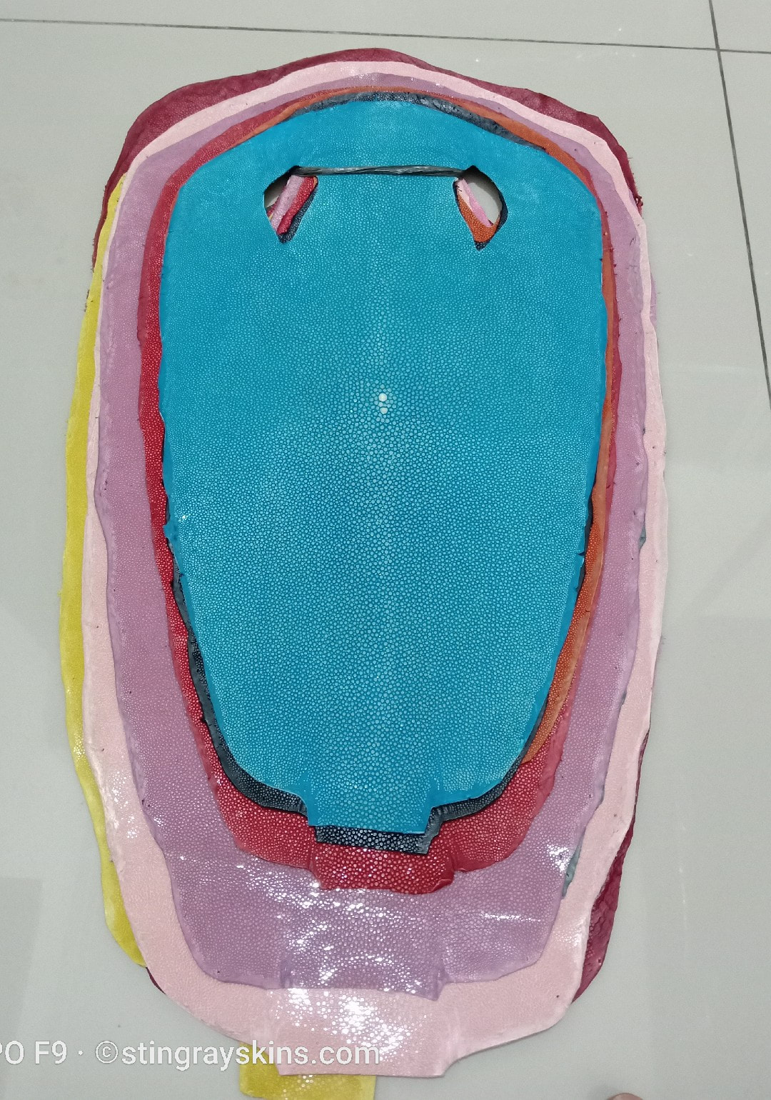 Genuine Stingray Leather , polished finishing. Round shape size 8 inch up to 15 inch wide. Drum dyed color and polished finishing to give mirror effect on the skin. Minumum Order Value USD 1,500.00